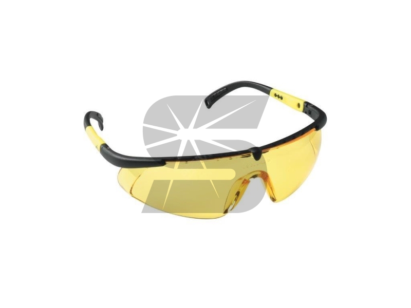 Ochranné brýle sportovního vzhledu s polykarbonátovým žlutým zorníkem a s úpravou proti poškrábání a orosení, ochranou proti nárazu s malou energií a nastavitelnou délkou stranic. Žlutý zorník má ochranný filtr proti UV záření.