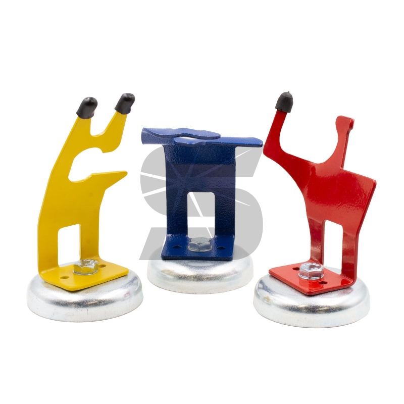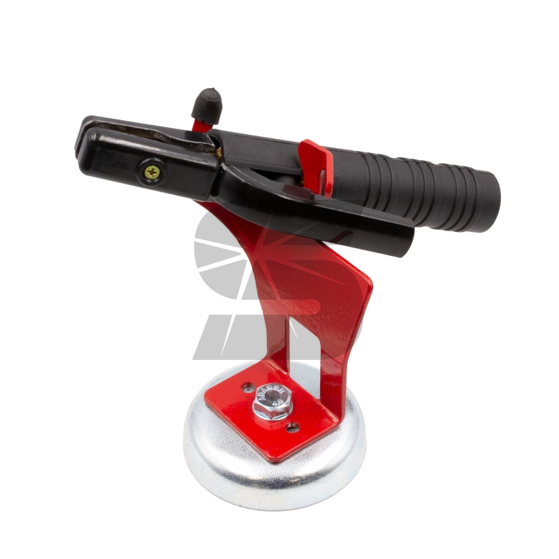 Magnetický držák kleští pro elektrody. Uchycení ke kovu magnetem v podstavci ulehčí práci při odkládání kleští.