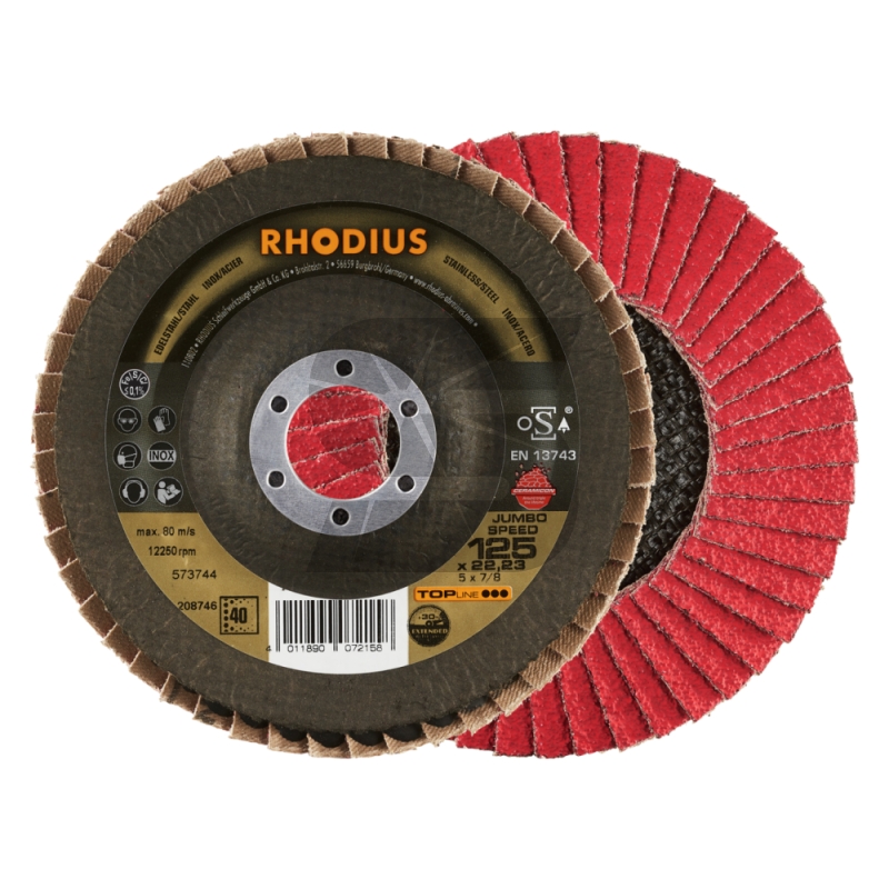 Lamelový brusný kotouč JUMBO SPEED 125x22,23 K60 z nerezové oceli, RHODIUS