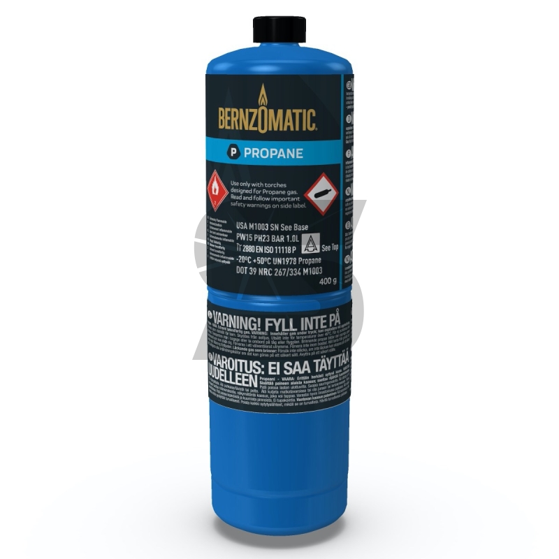 Plyn Propan 400g pro hořáky spalující Propane a PRO-Max™ – propylen, je ideální pro měkké pájení, má bezpečnostní ventil, kartuše je nevratná a nenaplnitelná.