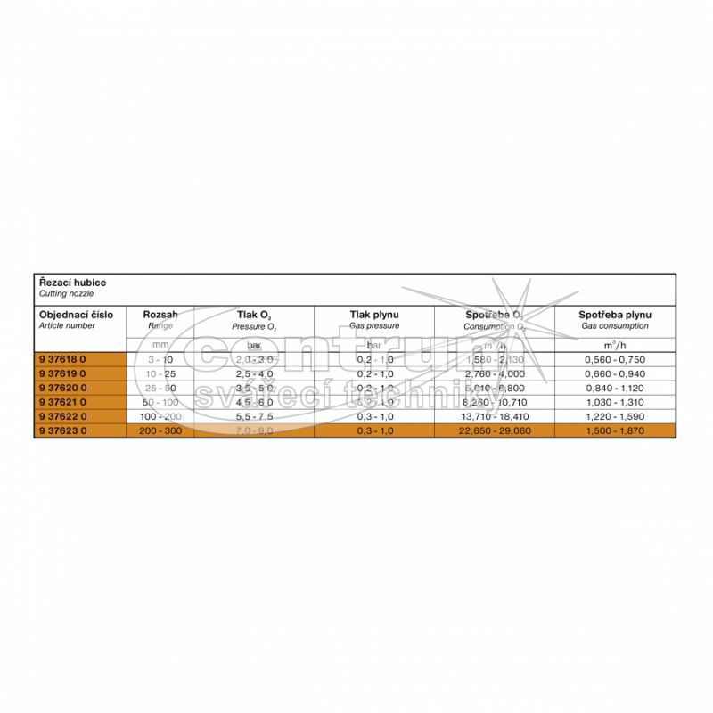 Vlastnosti Hubice řezací R70 AC, PB 200-300mm