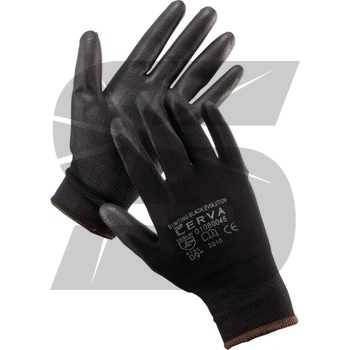 Ochranné bezešvé rukavice černé ze 100% polyesteru, polomáčené v polyuretanu, ve velikosti 10.