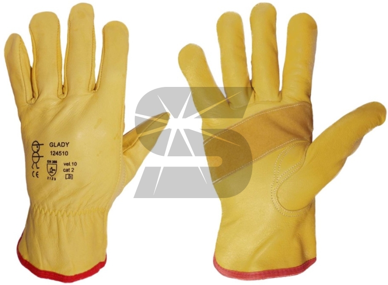 Celokožené pracovní rukavice GLADY ve velikosti 10 ze žluté lícové kozinky a štípené kůže, bez podšívky.