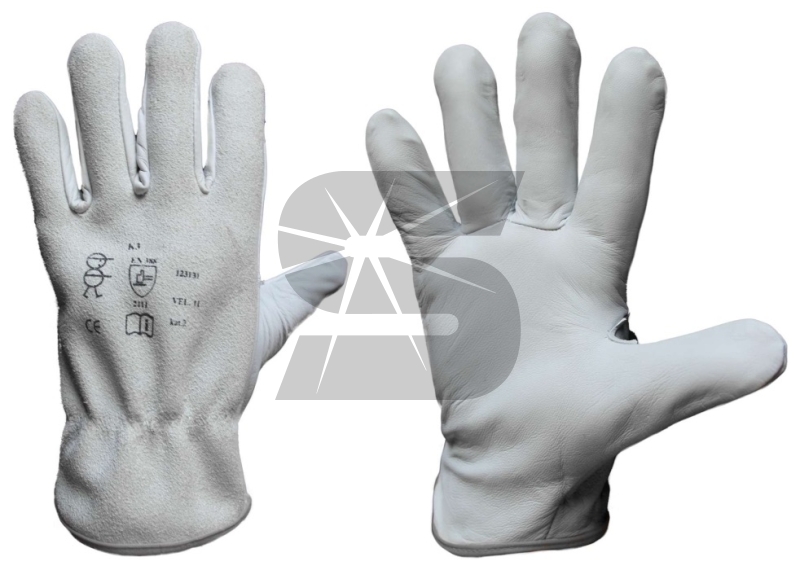 Pracovní rukavice K-3 ve velikosti 12 z lícové kozinky a štípené hověziny.