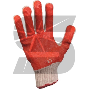 Pracovní pletené rukavice SCOTER ve velikosti 9-10 s odolností proti prořezu v úrovni -1. Rukavice jsou z máčeného PVC s pružnou manžetou.