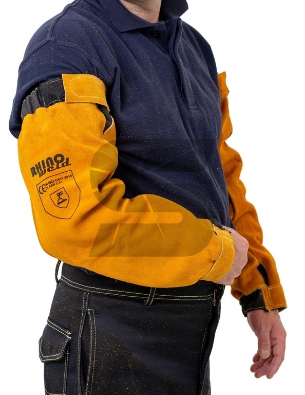 Odolné kožené svářečské rukávy GL137 z hovězí štípenky šité kevlarovou nití, které slouží k ochraně ruky svářečů při svařování. Na obou koncích mají suché zipy a elastické pásky pro pevné uchycení kolem rukou.