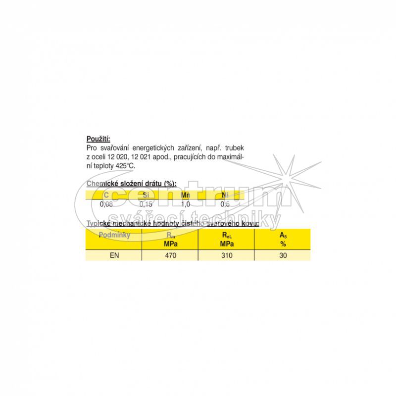 • Pro svařování energetických zařízení, např. trubek z oceli 12 020, 12 021 apod. pracujících do maximální teploty 425°C.